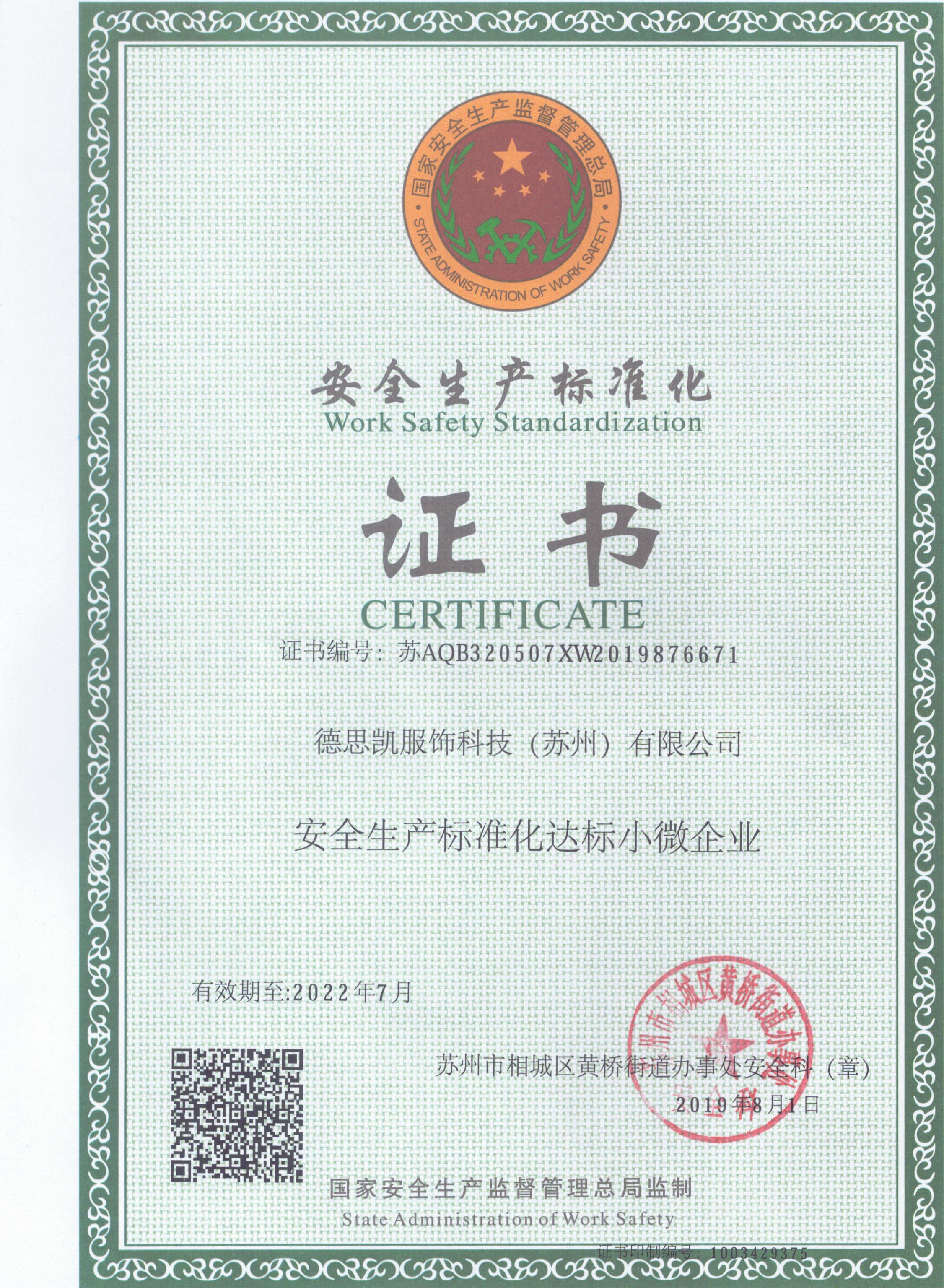 營業執照副本 營業執照 對外貿易經營者備案 德思凱商標注冊證 德思凱DESIKAI商標注冊證 安全生產標準化證書